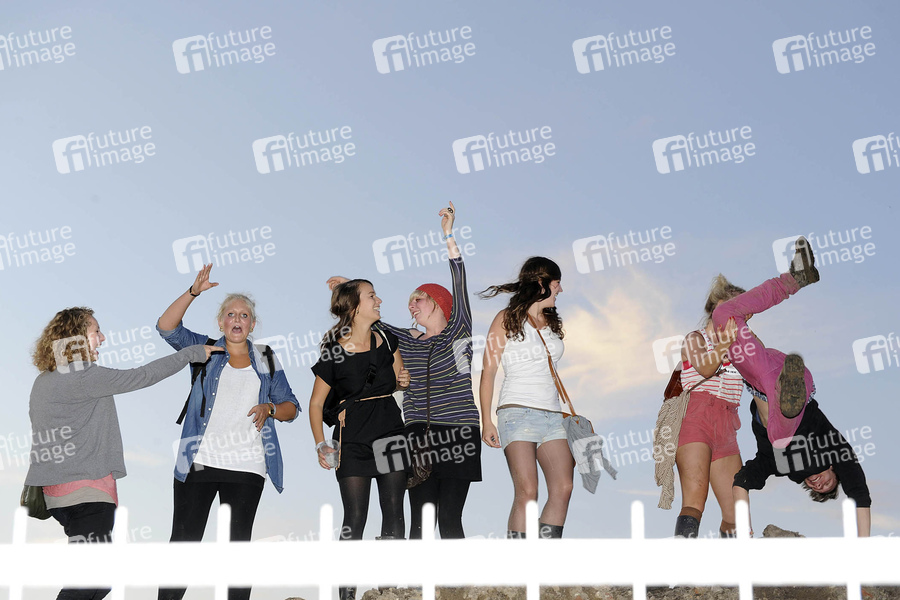 Publikum, Atmosphaere, Gelaende beim Dockville Festival in Hamburg-Wilhelmsburg vom 12.08. - 14.08.2011. Fans tanzen bei Sonnenuntergang auf einem Sandhuegel. Keine Personenrechte verfuegbar, nur fuer redaktionelle Verwendung. Bankverbindung Hamburger Sparkasse BLZ 200 505 50, Kto 1218 465704 Steuernr. 44/212/00187, Finanzamt HH-Bergedorf, Veroeffentlichung gegen namentliche Nennung, Honorar incl. 7%ust. und Belegexemplar.