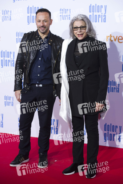 Kiti Manver mit Begleitung bei der Premiere des Kinofilms 'Dolor y gloria / Pain & Glory' im Cine Capitol. Madrid, 13.03.2019