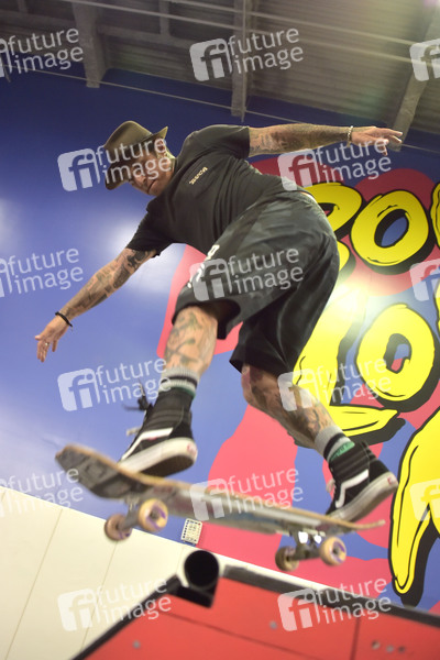 Christian Hosoi beim Start der Pop-up-Skatepark-Initiative 'Bones Love Milk' des California Milk Processor Board. Huntington Beach, 24.07.2019