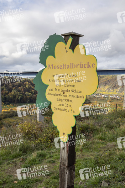 136 Meter hoch, 30 Meter breit, 935 Meter lang, Aussichtspunkt Blumslay, Autobahn, Balkenbrücke, Bauwerk, Bauzeit 1969 bis 1972, Beton, Betonpfeiler, DSD Dillinger Stahlbau, Ed. Züblin AG, Fahrzeitverkürzung, Großbohrpfähle, Heinz Schnorpfeil Bau GmbH, Julius Berger Bauboag AG, Lenz-Bau AG, Mosel-Wanderweg, Moselhochbrücke 1.0, Moselsteig, Rheinland-Pfalz, Stahlbau, Stahlhohlkasten, Stahlkonstruktion, Stahltrasse, Stahlüberbau, Statik, Straßenverwaltung, Tiefgründung, Weinanbaugebiet, Weinberge, Weinlandschaft, Tourismus, Sightseeing, Herbst, Fluss, Mosel, Symbolbild, Symbolfoto