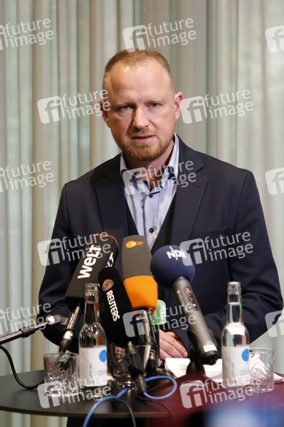 Christian Leye bei einer Pressekonferenz zum Abschluss der Klausurtagung des Bündnis Sahra Wagenknecht - Vernunft und Gerechtigkeit im Hotel Amano Grand Central. Berlin, 02.11.2025