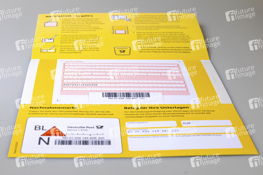 Deutsche Post, Zustellung, Remboursement, Mailorderanbieter, Zahlungssystem, Postpaket, Brief, Nachnahmesendung, Dienstleistung, Zahlung bei Übergabe, Absender, Empfänger, Zusteller, Nachnahmebetrag, Zahlungsanweisung, Ablieferung, Frachtgut, Empfänger, Käufer, Porto, Nachnahmegebühr, Postfiliale, Packstation, Benachrichtigung, Inkassobeleg, Symbolbild, Themenbild