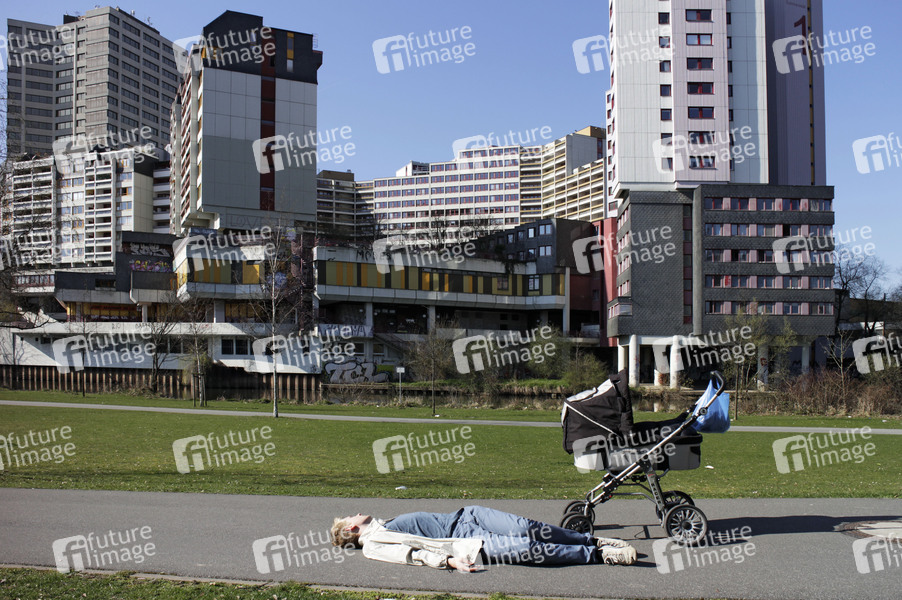 Kunst, Art, Unterhaltung, Entertainment, Kultur, Film, TV, Mord, Leiche, Fotokunstprojekt, Gewalt, tot, Tod, Gewaltverbrechen, Verbrechen, Kinderwagen, sozialer Brennpunkt, Problemviertel