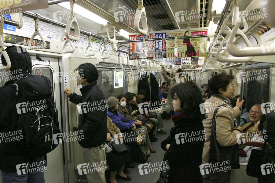 Metro, Untergrundbahn, Zug, Bahnfahrer, Werbebanner