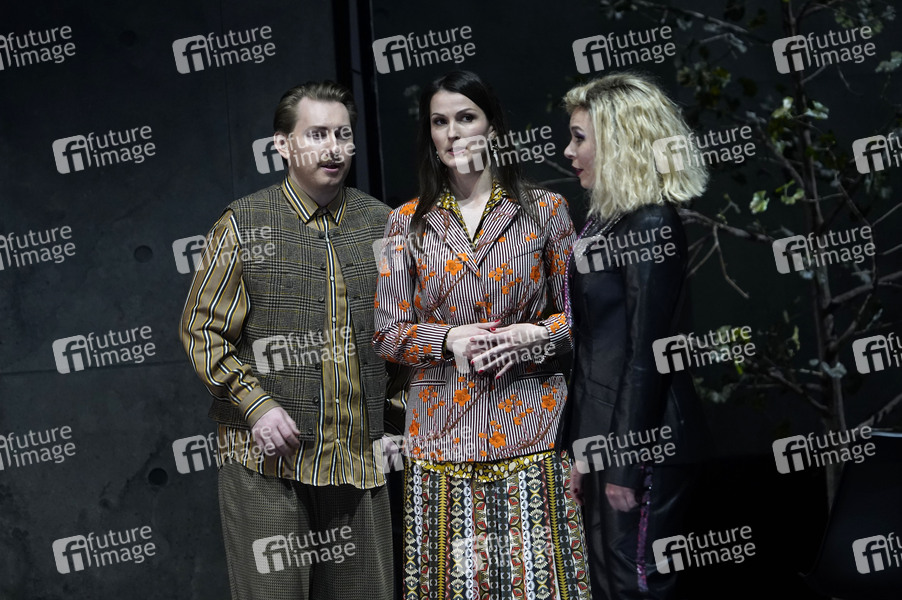 Bogdan Volkov, Slavka Zamecnikova und Elsa Dreisig bei der Fotoprobe von Wolfgang Amadeus Mozarts 'Don Giovanni' in der Regie von Vincent Huguet und unter der musikalischen Leitung von Daniel Barenboim in der Staatsoper Unter den Linden. Berlin, 29.03.2022