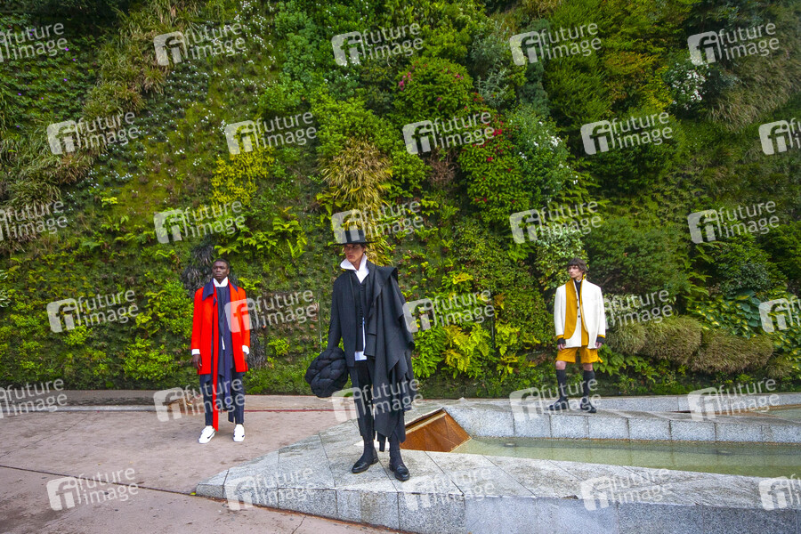 Fashion Show von 10 Modedesignern, die konzipiert wurden, um die charakteristische Mode zu feiern und ihre Rolle in der spanischen Wirtschaft und Kultur zurückzugewinnen auf dem Paseo del Prado. Madrid, 11.04.2021