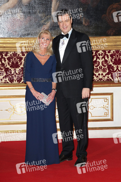 Markus Söder mit Ehefrau Karin Baumüller-Söder beim Neujahrsempfang des Bayerischen Ministerpräsidenten 2020 im Kaisersaal der Residenz. München, 10.01.2020