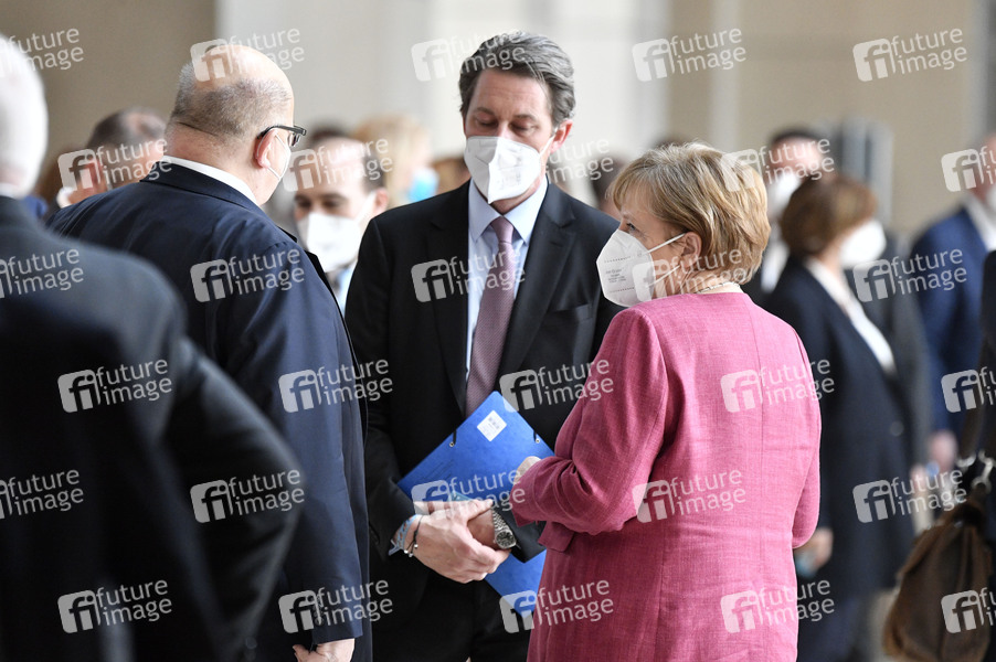 Peter Altmaier, Andreas Scheuer und Angela Merkel in der 223. Sitzung des Deutschen Bundestages im Reichstagsgebäude. Berlin, 21.04.2021
