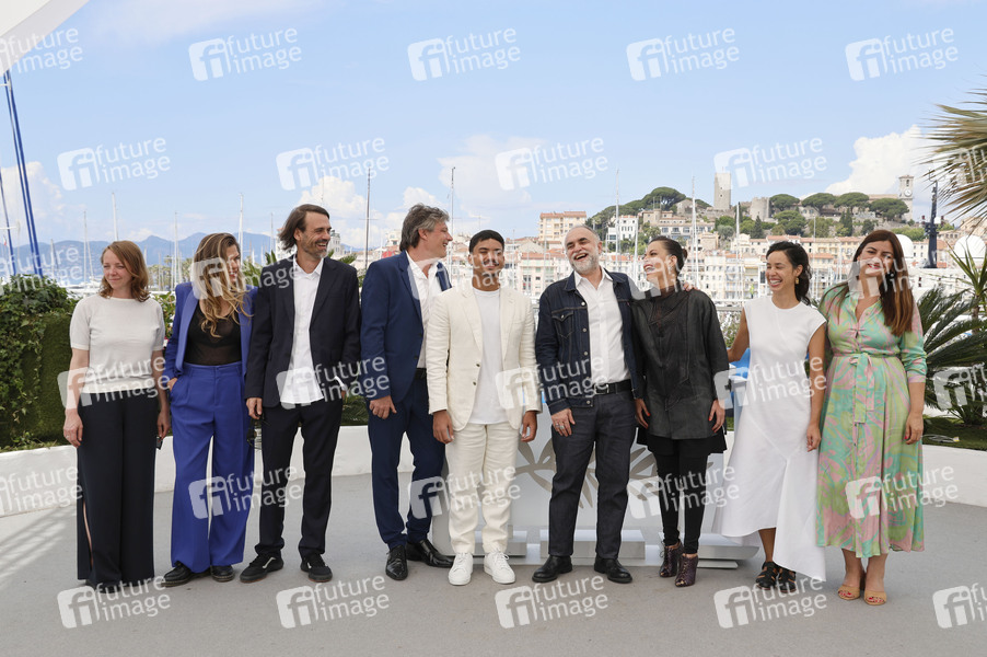 Viola Fugen, Simone Oliveira, Caio Gullane, Fabiano Gullane, Iago Xavier, Karim Ainouz, Nataly Rocha, Janaina Bernardes und Gast beim Photocall zum Kinofilm 'Motel Destino' auf dem Festival de Cannes 2024 / 77. Internationale Filmfestspiele von Cannes am Palais des Festivals. Cannes, 23.05.2024