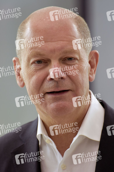 Olaf Scholz bei einem Statement nach einem Unternehmensbesuch bei der Merk KGaA im Innovation Center. Darmstadt, 26.08.2021