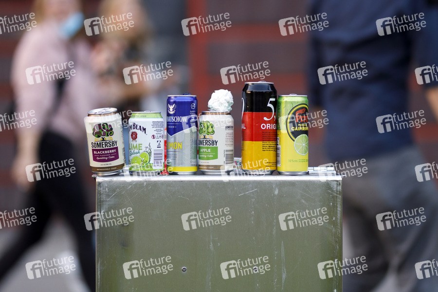 Dose, Dosen, Alu, Aluminium, Dosenpfand, Pfand, Pfandsystem, Getränke, Getränkedosen, Bierdosen, Dosenbier, Bierdose, alkoholische Getränke, Mülleimer, Papierkorb, Müll, Müllentsorgung, Pfanddosen, Pfandsammler, Alkoholkonsum, Getränkeverbot, Einweg, Mehrweg, Einwegpfand, Pfand-Pflicht, Recycling, Pfandpflicht, Dosenhersteller, Getränkebranche, Getränkeindustrie, Bierkonsum, Mixgetränke, Symbolbild, Symbolfoto