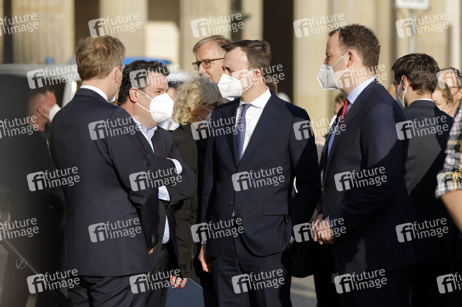 Christian Lindner, Hubertus Heil, Christine Lambrecht, Dietmar Bartsch und Jens Spahn bei der Kundgebung zur Solidarität mit Israel am Brandenburger Tor. Berlin, 20.05.2021