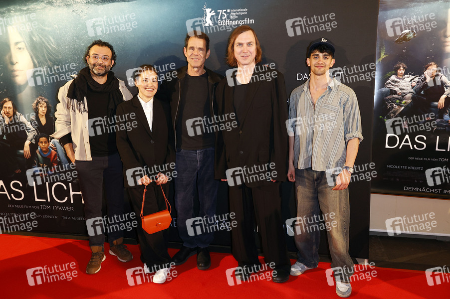 Mudar Ramadan, Nicolette Krebitz, Tom Tykwer, Lars Eidinger und Mido Kotaini bei der Premiere des Kinofilms 'Das Licht / The Light' in der Lichtburg. Essen, 12.03.2025