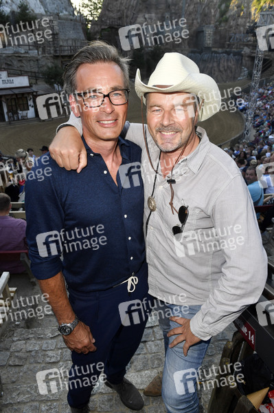 Jan Sosniok und Till Demtröder bei der Premiere von 'Unter Geiern - Der Sohn des Bärenjägers' der Karl-May-Spiele 2019 im Freilichttheater am Kalkberg. Bad Segeberg, 29.06.2019