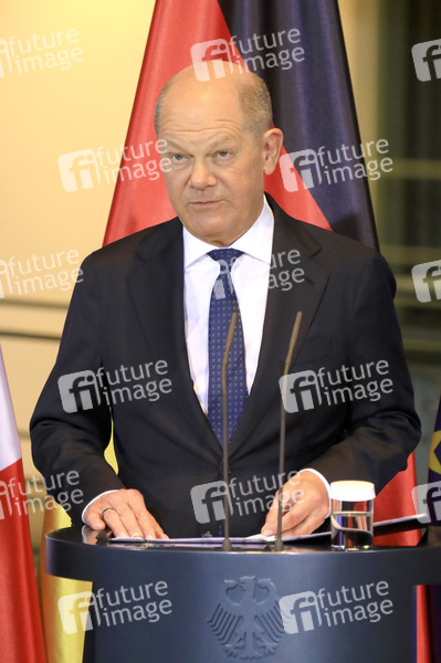 Olaf Scholz beim Empfang des Staatspräsidenten der Französischen Republik zu einem gemeinsamen Gespräch mit anschließendem Pressestatement im Bundeskanzleramt. Berlin, 18.03.2025