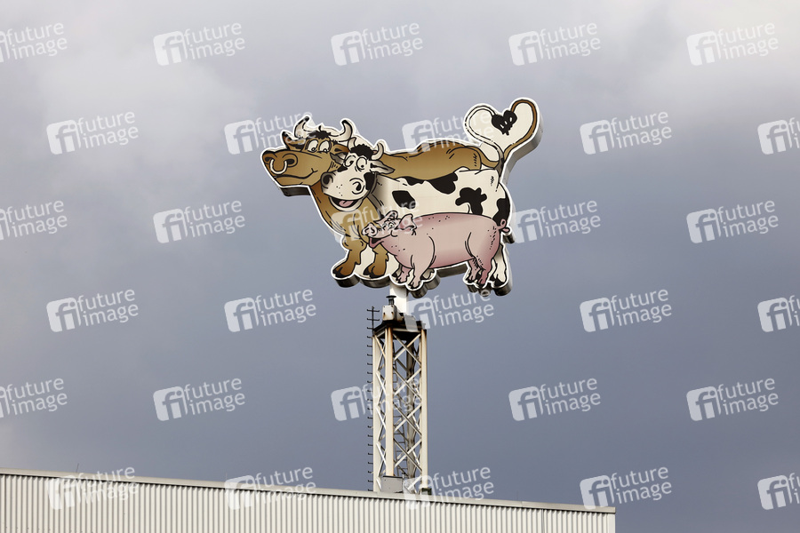 Logo der Lebensmittelfirma Tönnies am Hauptsitz in Rheda-Wiedenbrück. Der Fleisch-Konzern will die Schlacht- und Zerlegefirma Lazar übernehmen. Rheda-Wiedenbrück, 02.08.2020