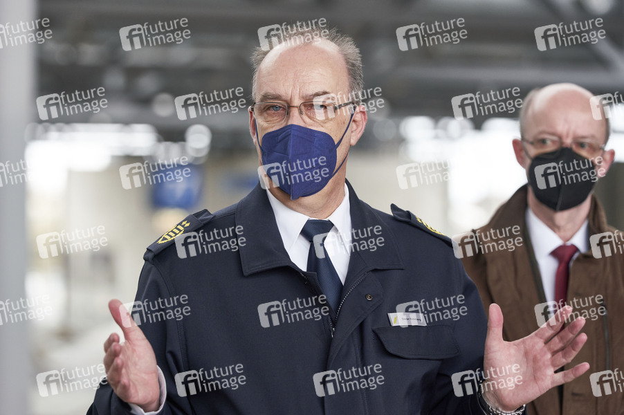 Dieter Rohrberg (Leiter der Feuerwehr Hannover) - Zeltdörfer-Unterkünfte für ukrainische Kriegsflüchtlinge in der Halle 27 auf dem Messegelände, inklusive Wasch- und Duschmöglichkeiten, errichtet von der Feuerwehr Hannover. Die spätere Versorgung erfolgt durch das DRK. Hannover, 06.03.2022