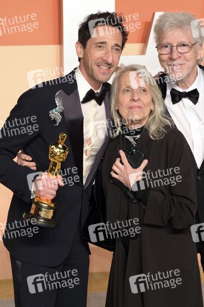 Adrien Brody mit Eltern Sylvia Plachy und Elliot Brody bei der Vanity Fair Oscar Party 2025 anlässlich der 97. Oscar-Verleihung im Wallis Annenberg Center for the Performing Arts. Beverly Hills, 02.03.2025