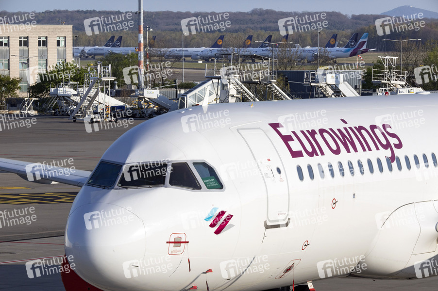 Abgestellte Flugzeuge nach vollständigem Erliegen des Personenflugverkehrs im Zusammenhang mit der Corona-Krise am Flughafen Köln/Bonn. Köln; 07.04.2020