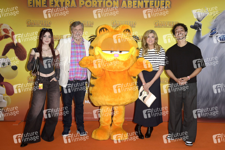 Anni The Duck, Hape Kerkeling, Anke Engelke und Aurel Mertz bei der Premiere des Animationsfilms 'Garfield - Eine extra Portion Abenteuer / The Garfield Movie' im Kino in der KulturBrauerei. Berlin, 05.05.2024