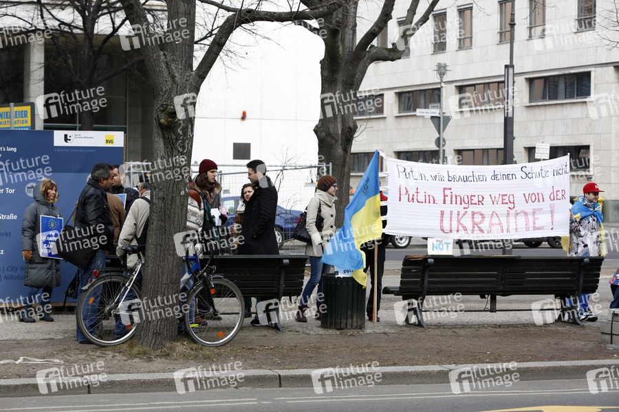 Ukrainer demonstrieren vor der Russischen Botschaft in Berlin gegen Russlands Aufmarsch vor der Krim. Berlin, 04.03.2014