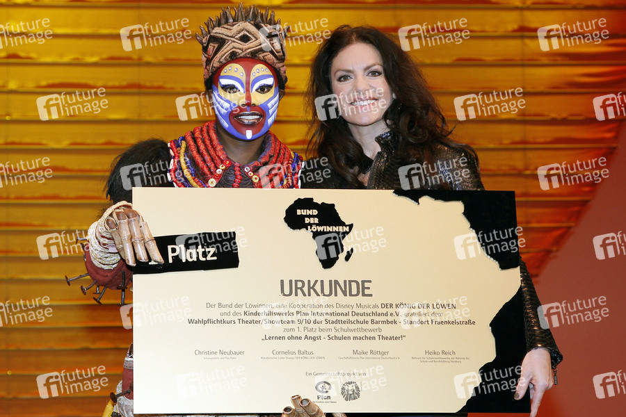 Christine Neubauer ehrt Schulklasse für den Sieg beim 'Bund der Löwinnen Theaterwettbewerb' im König der Löwen Zelt, Hamburg