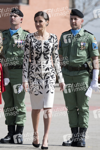 Königin Letizia von Spanien bei der Flaggenzeremonie der Fallschirmjägerbrigade Almogávares auf der Princip Base. Paracuellos de Jarama, 23.02.2019