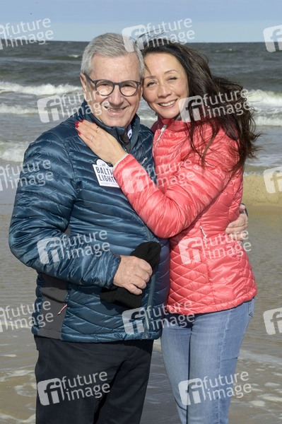 Jan Hofer mit Ehefrau Phong Lan Hofer beim Baltic Lights 2023 Charity-Hunderennen zu Gunsten der Welthungerhilfe zwischen der Seebrücke Ahlbeck und der Seebrücke Heringsdorf. Heringsdorf, 04.03.2023