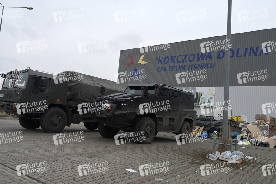 Ein Erstaufnahmelager für ukrainische Flüchtlinge in Korczowa nahe des Grenzübergang Korczowa-Krakowiec (Polen-Ukraine) in einem Einkaufszentrum. Korczowa, 09.03.2022