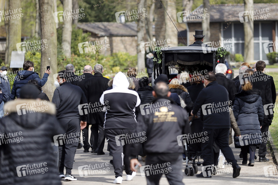 Die Stadt Leverkusen befürchtete eine größere Menschenansammlung bei der Beerdigung eines hochrangigen Clan-Mitglieds einer Großfamilie und damit Verstöße gegen die Corona-Schutzverordnung. Der Sarg wurde auf eine Kutsche geladen und in den Friedhof gefahren. Leverkusen, 09.04.2021