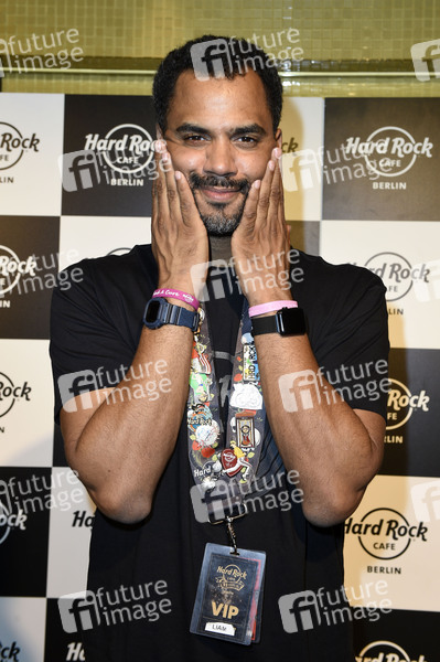 Patrice Bouedibela kellnert im Rahmen der Pinktober Charity-Aktion zugunsten der Organisation Brustkrebs Deutschland e.V. im Hard Rock Cafe. Berlin, 27.10.2019