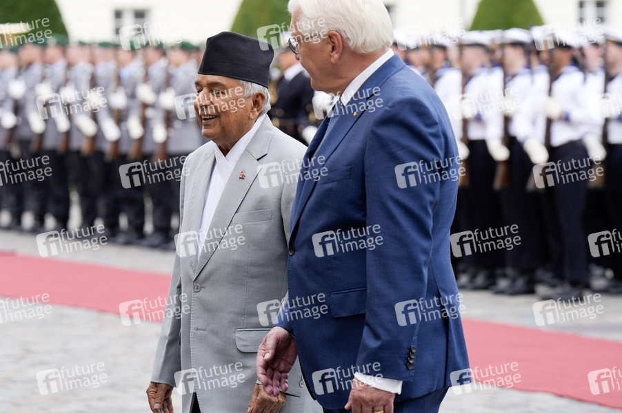 Ram Chandra Paudel und Frank-Walter Steinmeier beim Empfang des Präsidenten von Nepal mit militärischen Ehren im Schloss Bellevue. Berlin, 17.06.2024