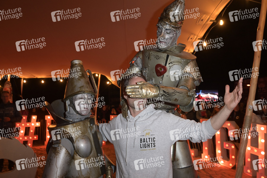 Claudia Jungesbluth, Matthias Schloo und Enrico Lein beim offiziellen Opening der Baltic Lights 2024 mit Fackellauf und Lagerfeuer an der Alex Strandbar. Heringsdorf, 01.03.2024
