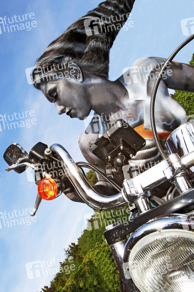 Bodypainting, Erotik, Frau, Mädchen, nackt, draußen, weiblich, Motorrag, Körperkunst, Kunst, Malerei, erotic, woman, girl, nude, outdoor, female, body art, body painting, motorbike, motorcycle