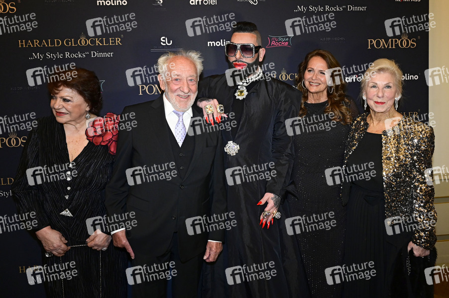 Theophana Prinzessin von Sachsen, Dieter Hallervorden, Harald Glööckler, Christiane Zander und Jutta Prinzessin von Preussen beim Harald Glööckler 'My Style Rocks' Fashion-Dinner im Rahmen der Berlin Fashion Week A/W 2025 im Ermelerhaus.Berlin, 29.01.2025