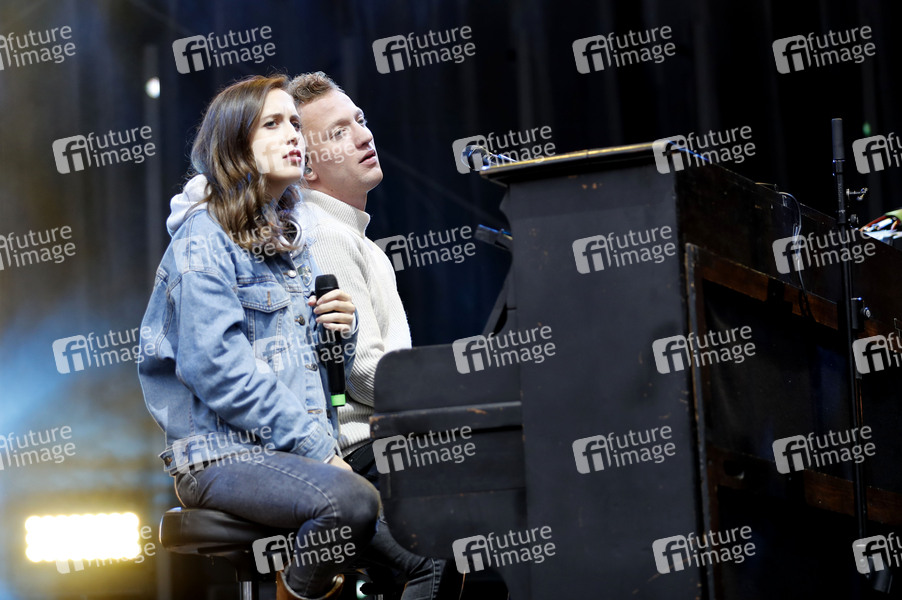 Alice Merton und Joris live live beim Solidaritätskonzert 'Halle zusammen' für die Opfer des Anschlags vom 9. Oktober auf dem Marktplatz. Halle an der Saale, 19.10.2019