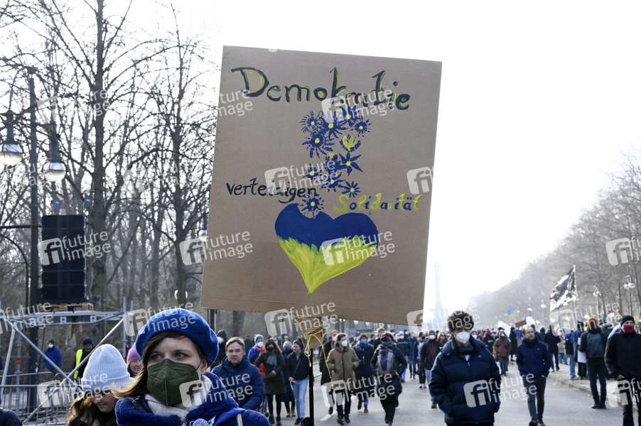 Großdemonstration unter dem Motto 'Stoppt den Krieg. Frieden für die Ukraine und ganz Europa' zwischen Brandenburger Tor, der Straße des 17. Juni und an der Siegessäule. Berlin, 27.02.2022