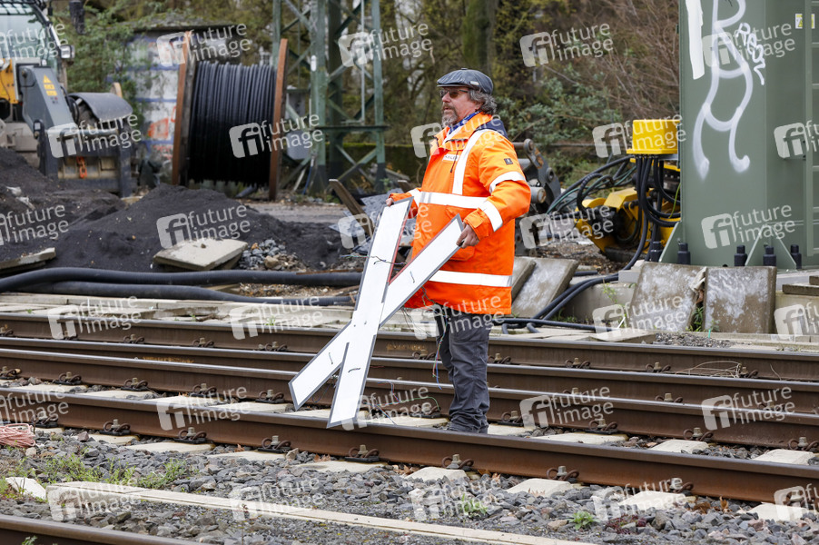 Zeichen Signal ungültig beim Fototermin 'Endspurt für das Elektronische Stellwerk (ESTW) Linker Rhein' am Bahnhof Köln-West. Köln, 13.03.2024