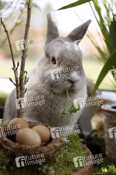 Hase, Osterhase, Kaninchen, Zwergkaninchen, Easter Bunny, Frohe Ostern, Oster-Geschenke, Ostern, Osternest, Ostersaison, Osterzeit, Ostereier, Feiertag, Ostersonntag, Ostermontag, Symbolfoto, Symbolbild