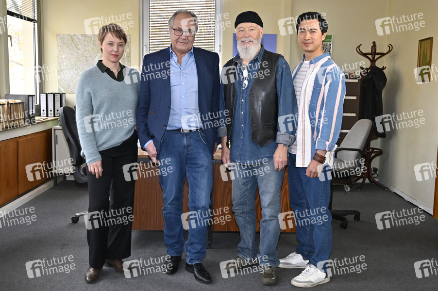 Katja Danowski, Hartmut Volle, Bill Mockridge und Aaron Le beim Fototermin am Set der ARD TV-Serie 'Rentnercops' in der Stolberger Straße. Köln, 01.12.2022