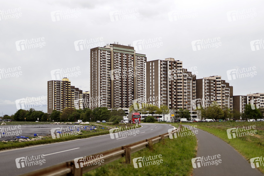 Die Schwerpunktimpfung in Kölner Stadtbezirken mit hoher Inzidenz laufen vorerst aus. Der Grund: Es fehlt Impfstoff. Im Bild eine Wohnanlage am Kölnberg im Stadtteil Meschenich. In dem sozialen Brennpunkt wurde Freitag und Samstag eine Sonderimpfung angesetzt. (Themenbild, Symbolbild) Köln, 10.05.2021
