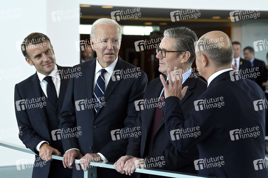 Emmanuel Macron, Joe Biden, Keir Starmer und Olaf Scholz beim QUAD Treffen im Bundeskanzleramt. Berlin, 18.10.2024