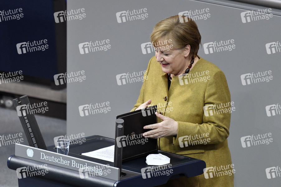 Angela Merkel bei der Regierungserklärung zur Bewältigung der COVID-19-Pandemie in der 209. Sitzung des Deutschen Bundestages im Reichstagsgebäude. Berlin, 11.02.2021