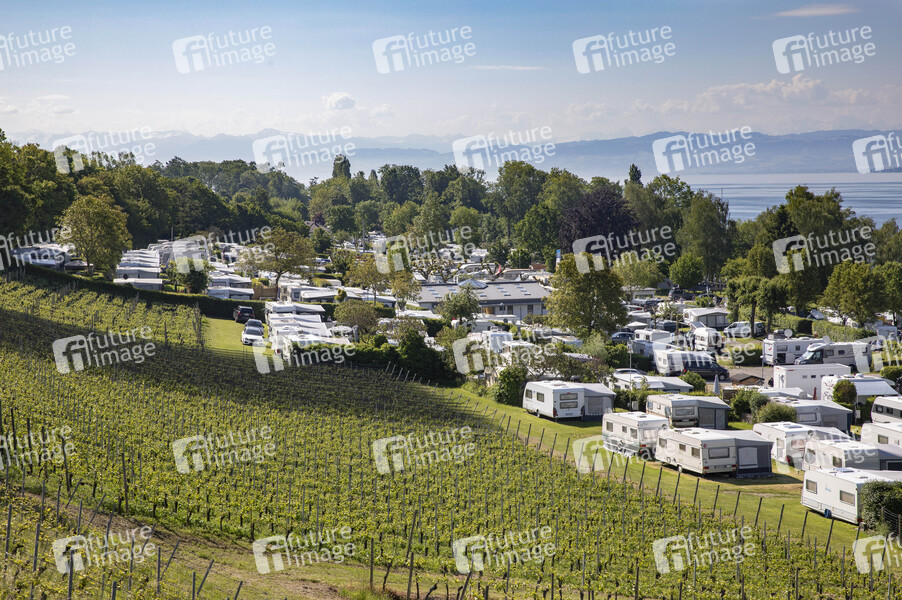 Seit dem 14.Mai 2021 sind in Baden-Württemberg die Campingplätze unter Auflagen wieder geöffnet und am Bodensee meistens voll belegt. Hagnau am Bodensee, 02.06.2021