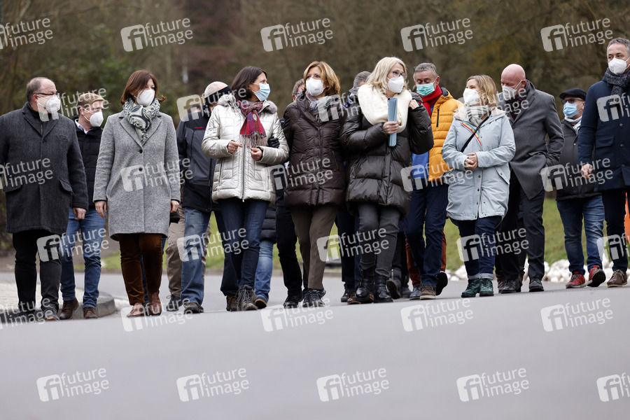 Daniela Schmitt, Malu Dreyer und Katrin Eder besuchen sechs Monate nach der Jahrhundertflut das Ahrtal, um Bestandsaufnahme in der Ortsgemeinde Schuld zu machen. Schuld, 12.01.2022