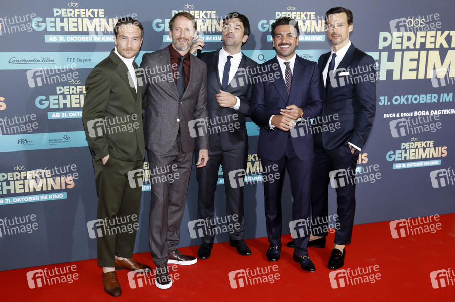 Frederick Lau, Wotan Wilke Möhring, Bora Dagtekin, Elyas M'Barek und Florian David Fitz bei der Premiere des Kinofims 'Das perfekte Geheimnis' im Mathäser Filmpalast. München, 21.10.2019