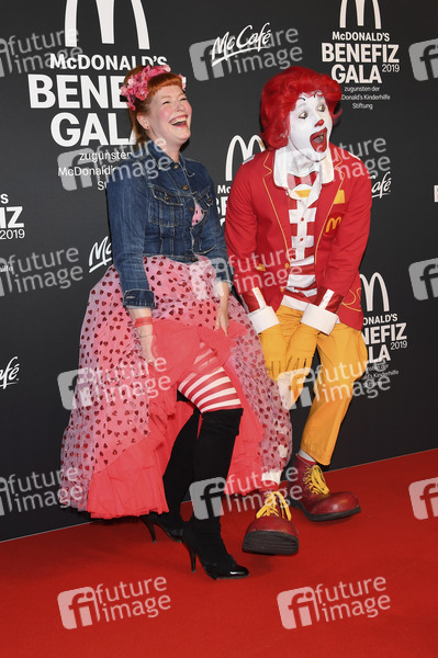 Enie van de Meiklokjes und Ronald McDonald bei der 16. McDonald's Benefiz Gala 2019 im Hotel Bayerischer Hof. München, 09.11.2019