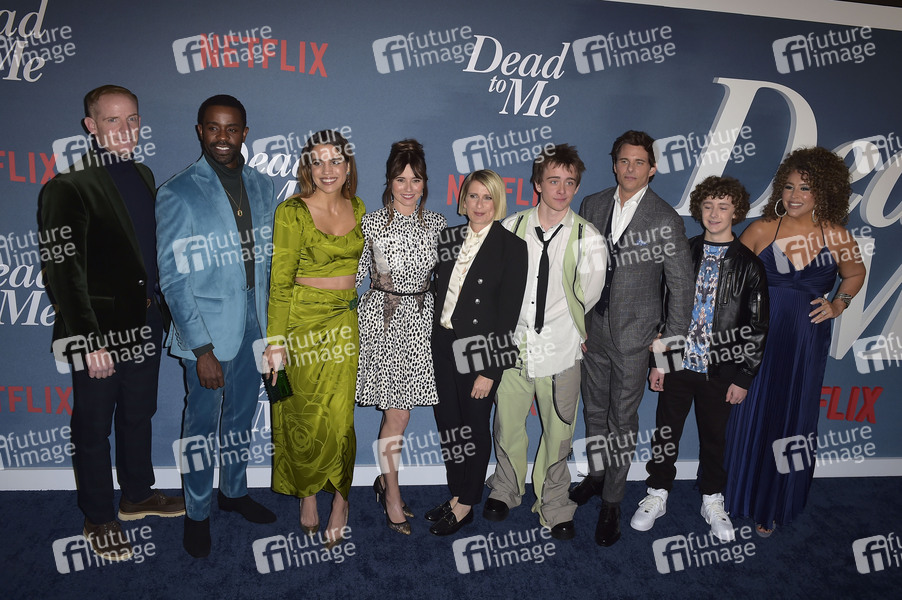 Marc Evan Jackson, Brandon Scott, Natalie Morales, Linda Cardellini, Liz Feldman, Sam McCarthy, James Marsden, Luke Roessler und Diana Maria Riva bei der Premiere der 3. Staffel der Netflix TV-Serie 'Dead to Me' im Netflix Tudum Theater . Los Angeles, 15.11.2022