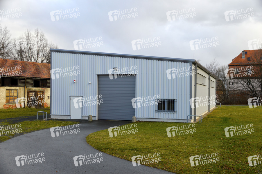 Die Leichenlagerhalle in der Komturstrasse. Wegen der dramatisch hohen Todeszahlen im ostsächsischen Zittau müssen dort Leichen außerhalb des Krematoriums zwischengelagert werden. Die Toten sollen im Bereich des Hochwasserstützpunkts gelagert und 'bei Freigabe zur Einäscherung' ins Krematorium gefahren werden, teilte die Stadt Zittau am Dienstagabend mit. (Symbolbild, Themenbild) Zittau, 24.12.2020