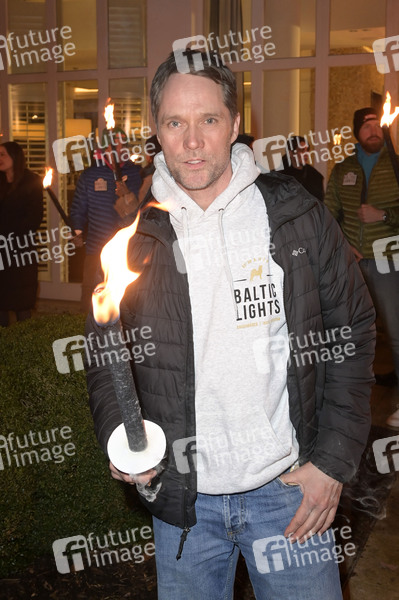 Matthias Schloo beim offiziellen Opening der Baltic Lights 2024 mit Fackellauf und Lagerfeuer an der Alex Strandbar. Heringsdorf, 01.03.2024